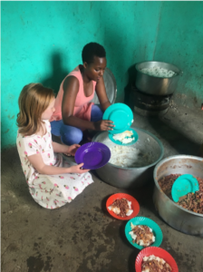 We got to travel to two feeding programs on this day. There was a mix up of directions to start, so after an hour we had to make a pit stop where our kids got to perform their skills using a squatty potty bathroom. We arrived at our first stop was Buhoro just after lunch. I remembered this location from my visit 6 years ago, but there was certainly improvements made since I was there last. There were sidewalks and shrubs instead of just the dirt pathways that I remembered. We got to help dish up for the feeding program and then have a dance off. They taught us how to dance Rwandan style, and we taught them how to do the floss. It probably wasn’t our most shining moment, but we did it.